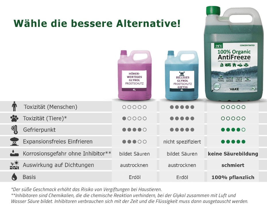 VAKE Frostschutzmittel - die umweltfreundliche und nachhaltige Alternative zu herkömmlichen Frostschutzmitteln !