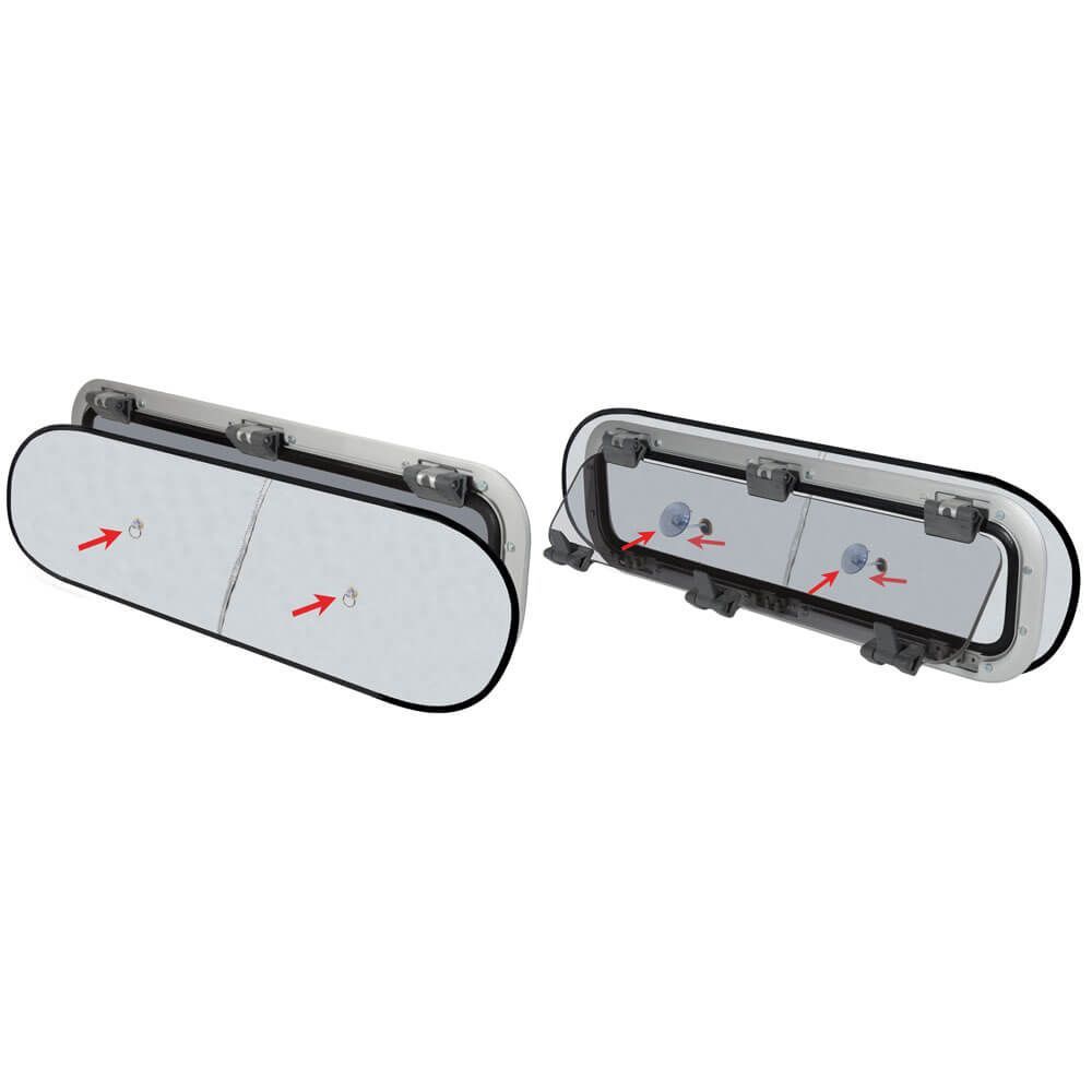 Ob bei grellem Sonnenlicht oder bei einem plötzlichen Mückenschwarm – mit der Verdunklung & Fliegengitter-Kombination sind Sie immer gut geschützt. Die Installation ist kinderleicht und erfolgt über einen Saugnapfhalter, der auf der Innenseite des Lukenglases befestigt wird. Dadurch bleibt das Moskitonetz jederzeit mobil und flexibel einsetzbar.