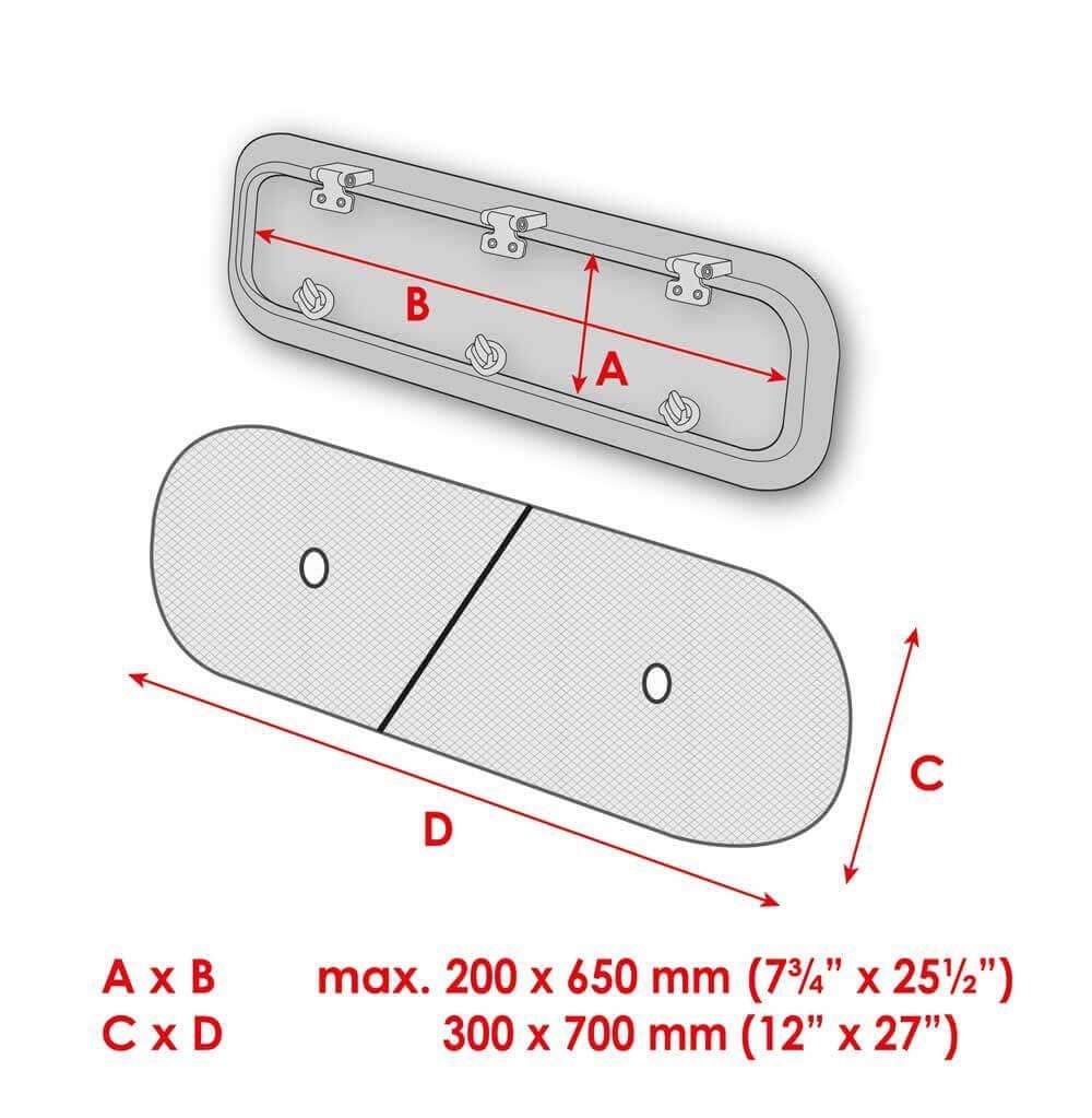 - geeignet für Luken: 200 x 650 mm