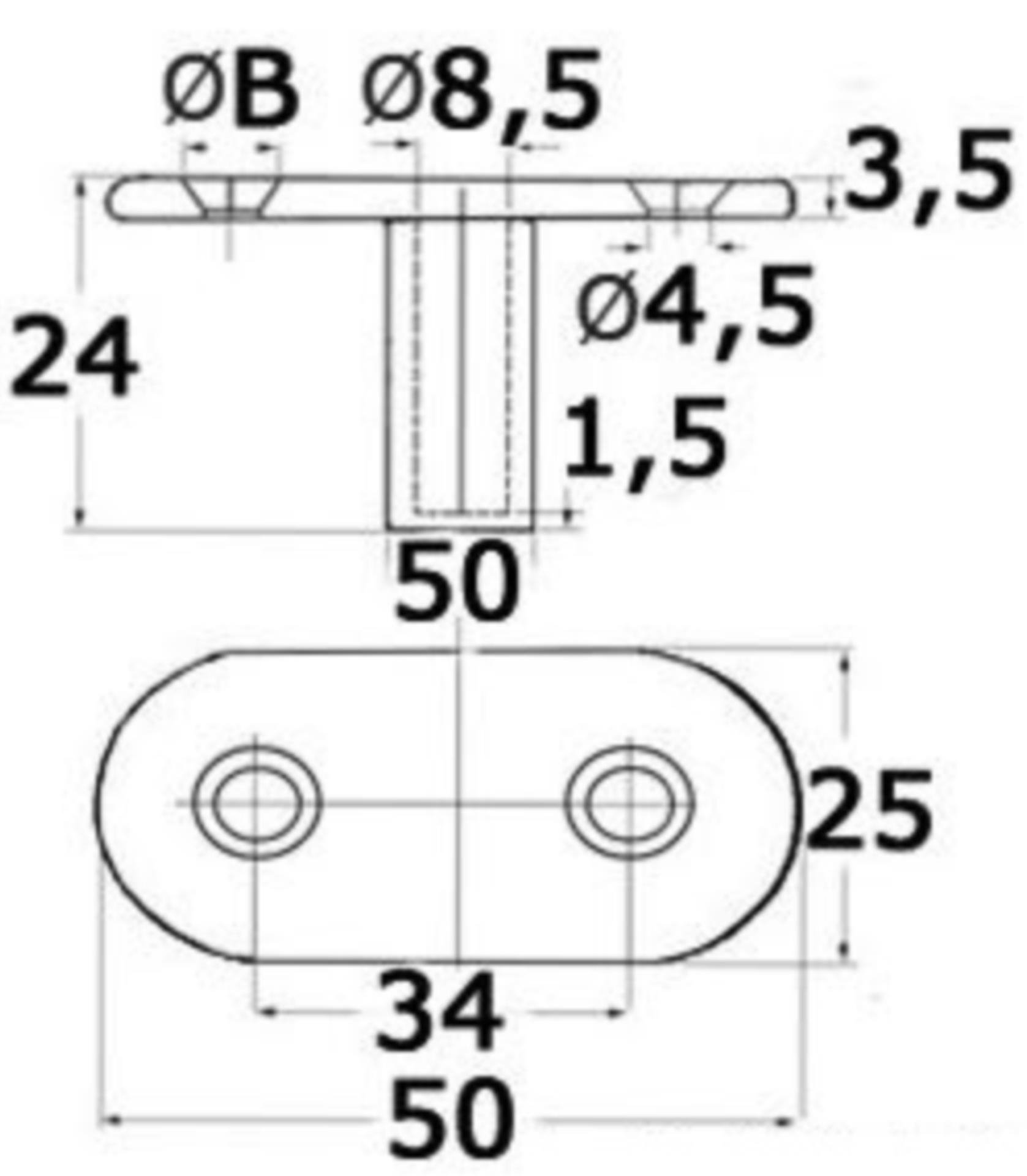 Gabelhalterung aus hochglanzpoliertem Mikrofusionsedelstahl AISI 316 für Fiberglaslatten oder zur Gestängebefestigung von Persenning-Stützbögen aus Glasfaser oder Holz.