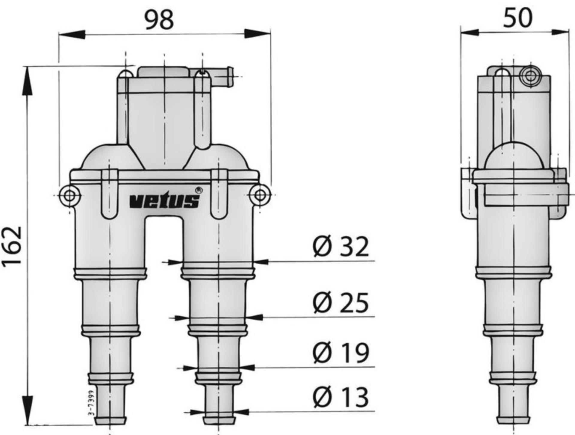 Mit dem Vetus AIRVENTV Siphonventil setzen Sie auf Sicherheit und Langlebigkeit – eine unverzichtbare Komponente für jedes Boots-Motorsystem.