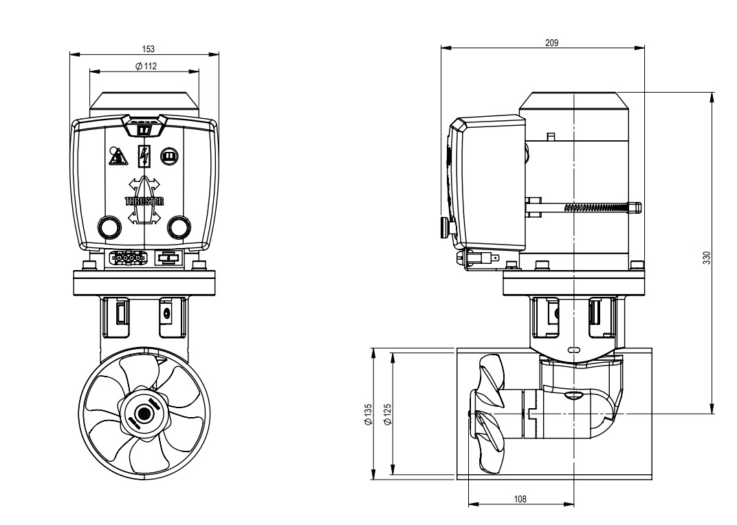 Das Bugstrahlruder wird komplett montagefertig geliefert. Alle benötigten Dichtungen, elektrischen Anschlüsse, Befestigungselemente sowie eine automatische Sicherung mit externer Rückstellung sind bereits enthalten. Eine ausführliche Einbau- und Bedienungsanleitung macht die Installation einfach und sicher.