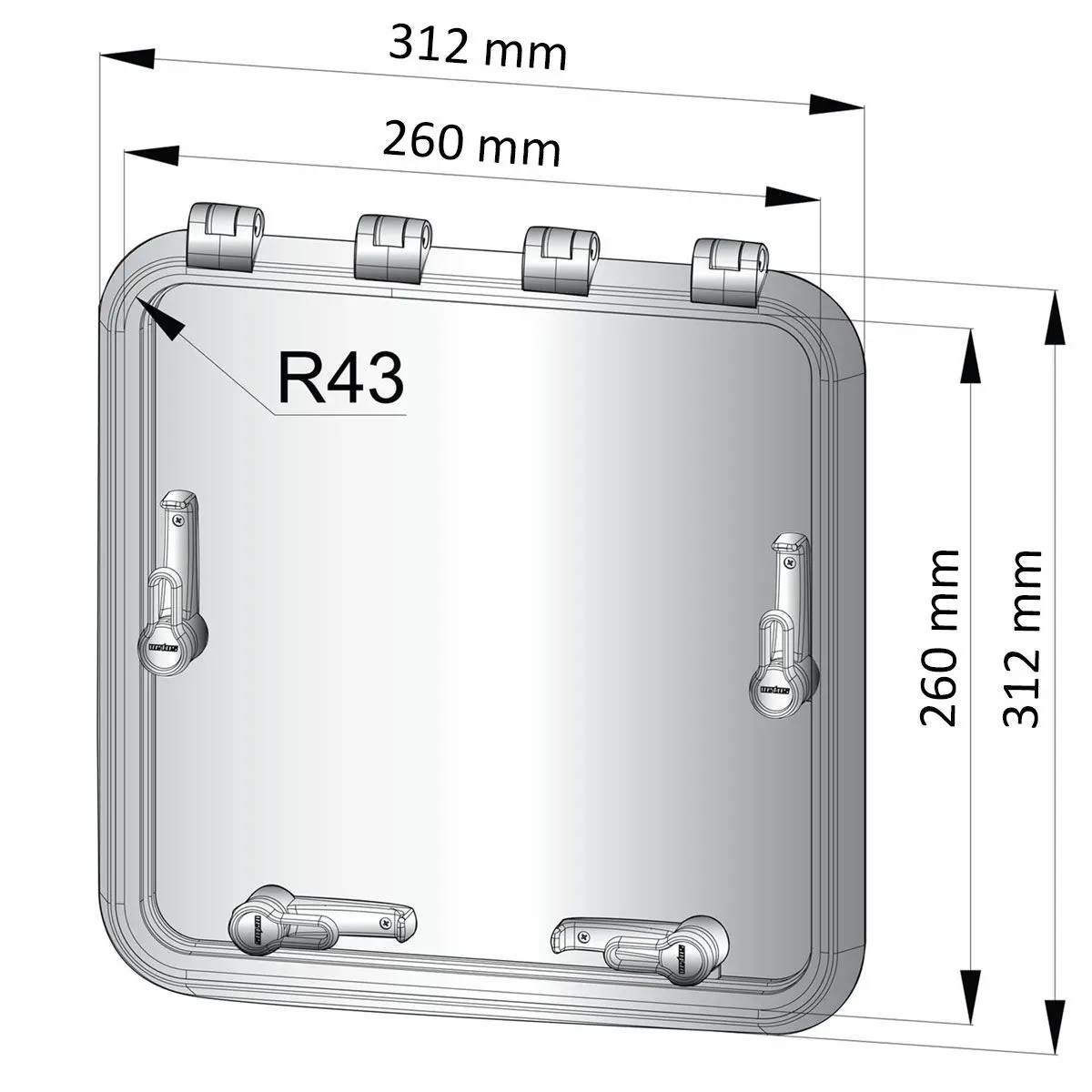 - Außen (A x B): 312 x 312 mm