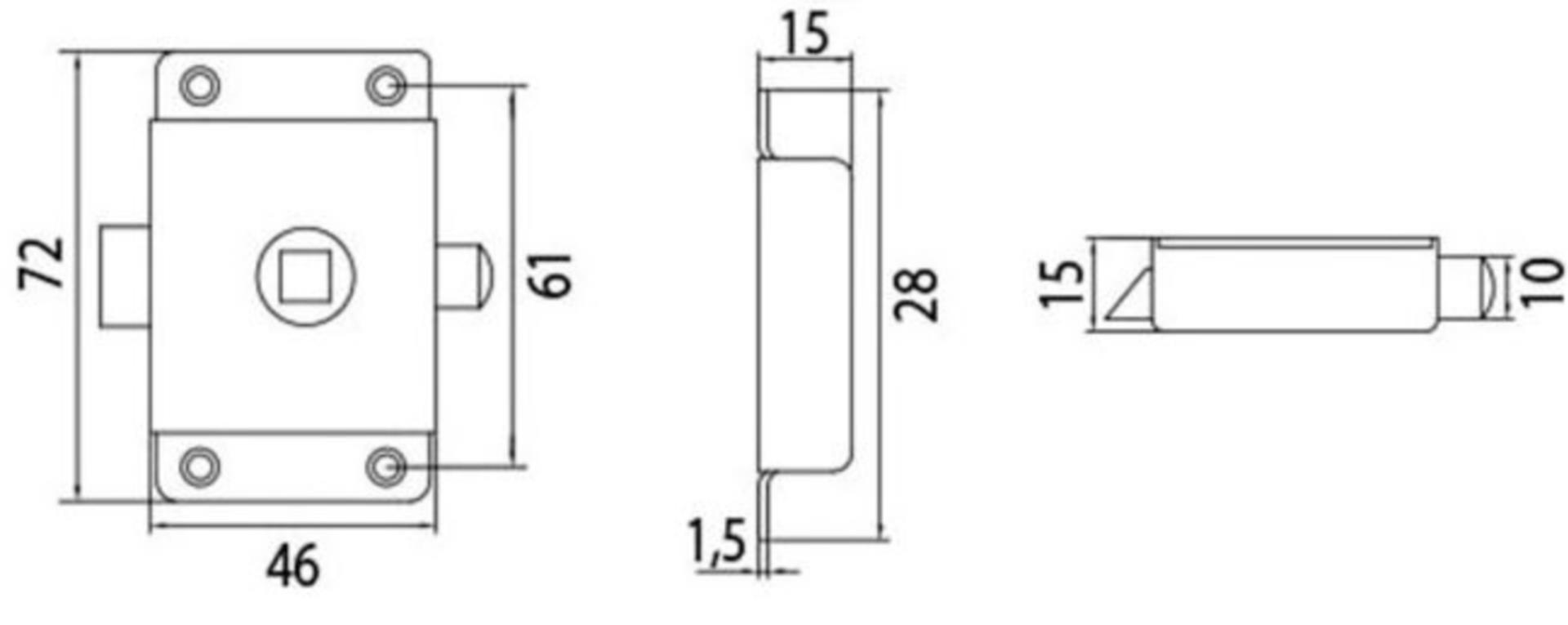 - Maße: 56 x 50 mm (Höhe mit Pin 80 mm)./ 72 x 46 mm