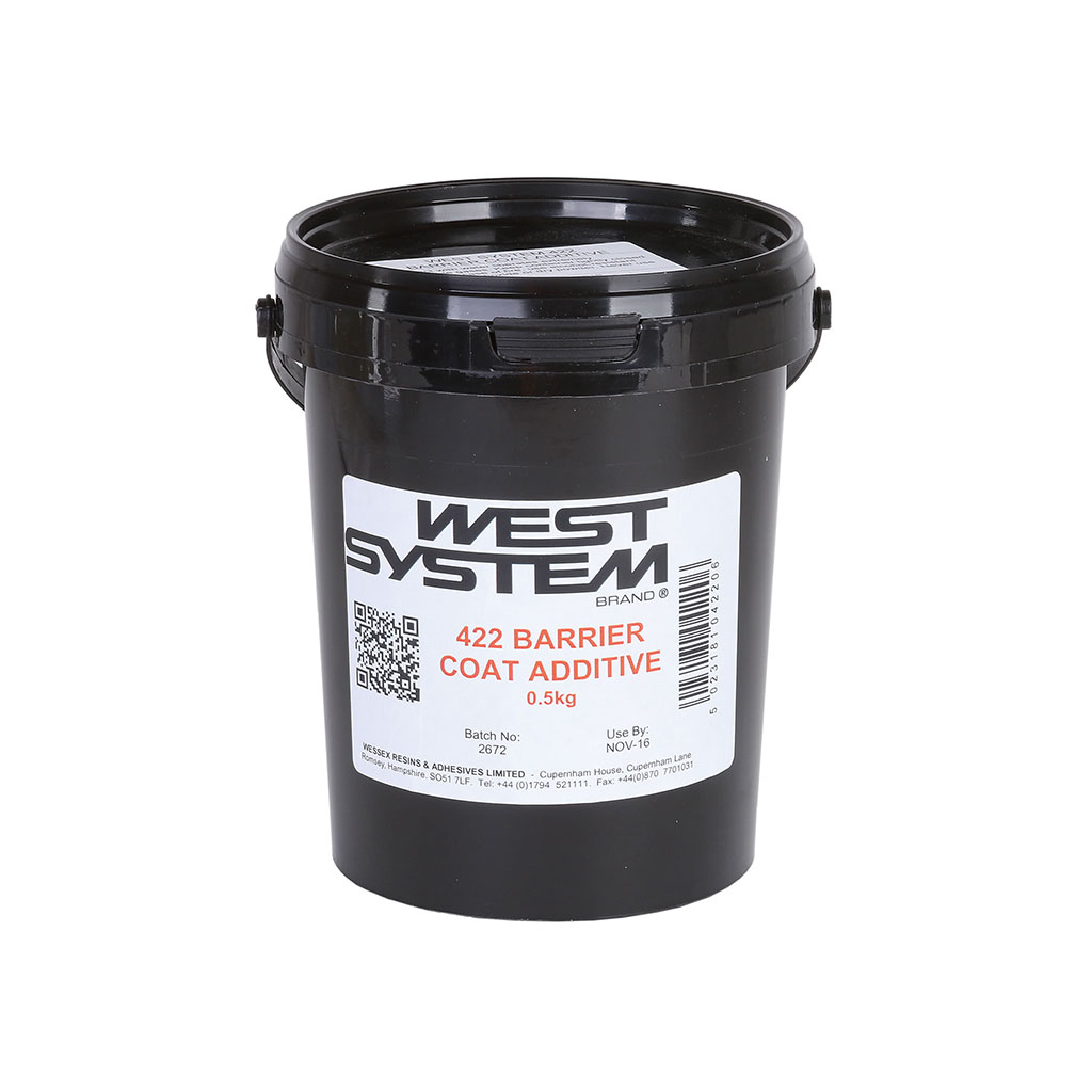 Der WEST SYSTEM Sperrschicht-Füller 422 ist ein hochwirksamer Zusatzstoff auf Aluminiumbasis zur Herstellung feuchtigkeitsresistenter Epoxidharz-Beschichtungen. Durch seine spezielle Formulierung verbessert er signifikant die Wasserundurchlässigkeit und verhindert zuverlässig die Bildung von Osmose- bzw. Gelcoat-Blasen. Gleichzeitig erhöht der Füller die Abriebfestigkeit der finalen Oberfläche – ideal für stark beanspruchte Bereiche wie Unterwasserbereiche oder Rümpfe von GFK-Booten.