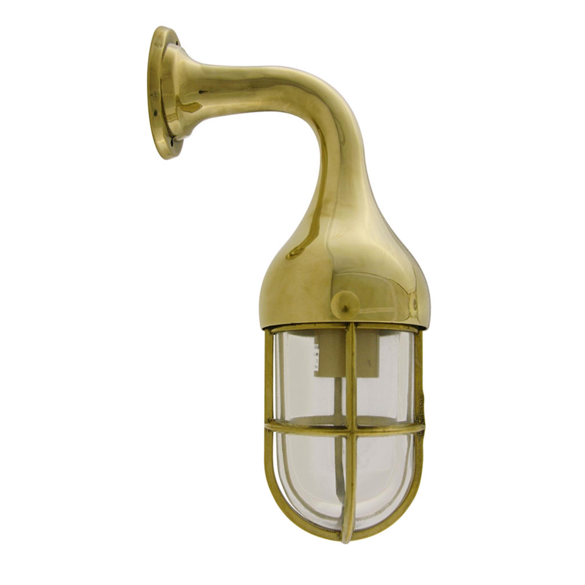 Diese wasserfeste Wandleuchte aus massivem Messing vereint maritimen Stil mit langlebiger Qualität. Mit einer Höhe von 32 cm und einer Tiefe von 17 cm eignet sie sich perfekt für den Einsatz im Außenbereich – ob an Bord, auf der Terrasse, an der Hauswand oder in der Gartenlaube.