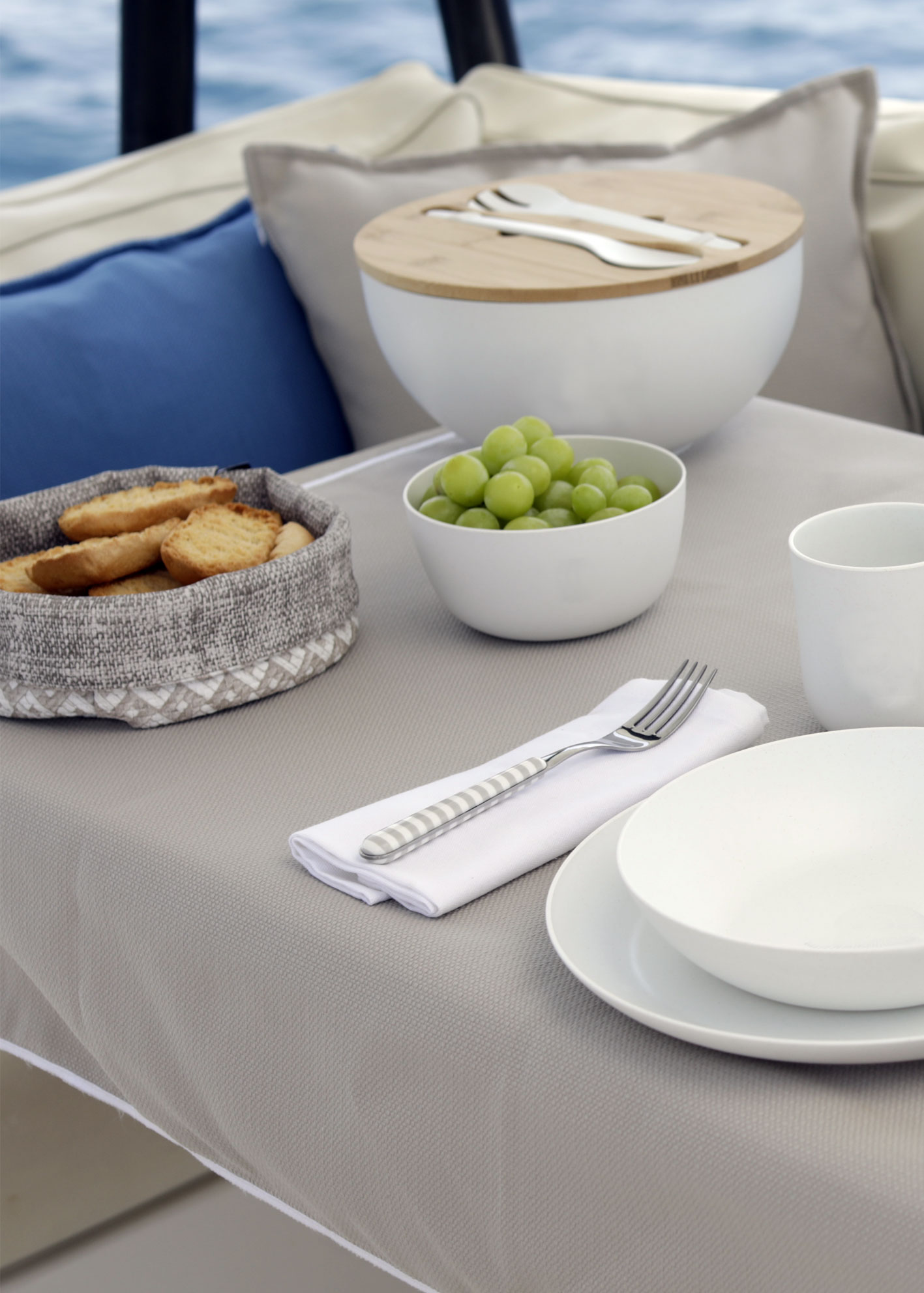 Das Sortiment reicht von hochwertigem Melamin-Geschirr über unzerbrechliche Glaswaren, stilvolle Tisch- und Küchenaccessoires bis hin zu Bettwäsche für Boote und Strandtüchern. Alle Produkte werden aus sorgfältig ausgewählten Materialien gefertigt und sind auf Langlebigkeit, einfache Pflege und maximale Alltagstauglichkeit ausgelegt – ideal für das maritime Umfeld und den Outdoor-Einsatz.