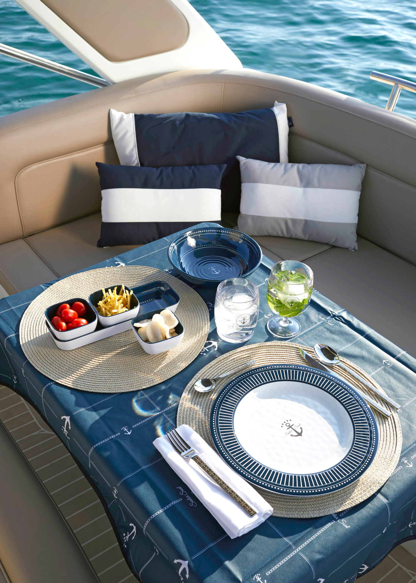 Das Sortiment reicht von hochwertigem Melamin-Geschirr über unzerbrechliche Glaswaren, stilvolle Tisch- und Küchenaccessoires bis hin zu Bettwäsche für Boote und Strandtüchern. Alle Produkte werden aus sorgfältig ausgewählten Materialien gefertigt und sind auf Langlebigkeit, einfache Pflege und maximale Alltagstauglichkeit ausgelegt – ideal für das maritime Umfeld und den Outdoor-Einsatz.