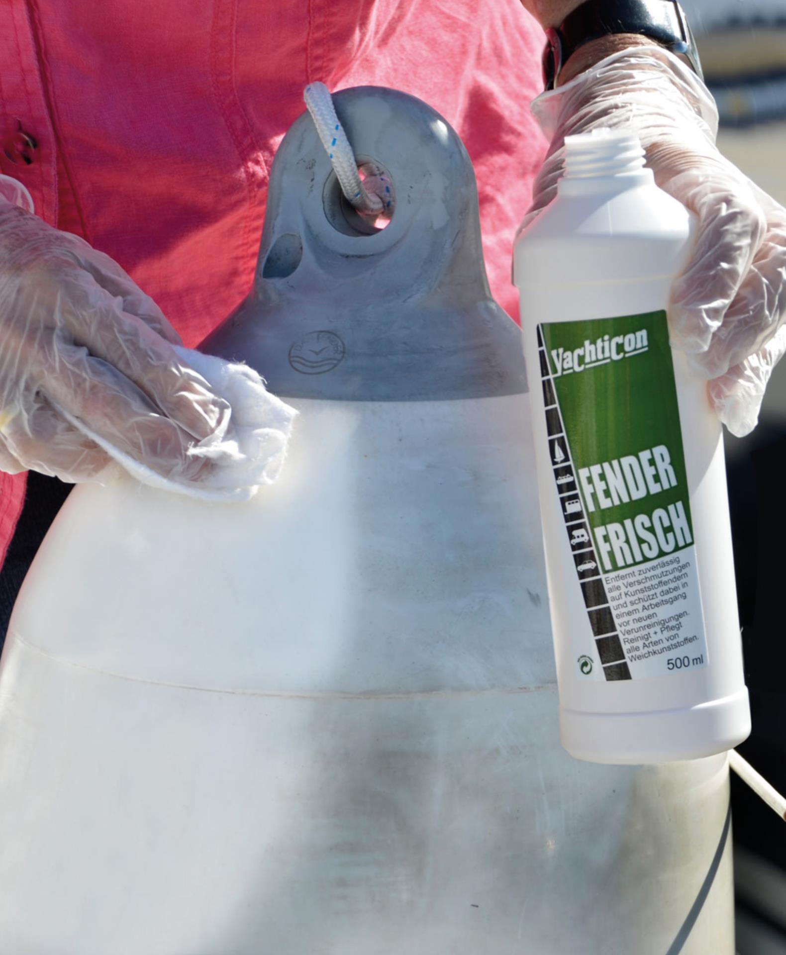 Mit Yachticon Fenderfrisch entfernen Sie Schmutz, Ablagerungen und Verfärbungen von PVC- und anderen Kunststofffendern spielend leicht – ohne Rückstände oder klebrige Oberflächen. Die innovative Reinigungsformel reinigt, schützt und pflegt Ihre Fender und andere Kunststoffoberflächen in nur einem Schritt, ohne den Kunststoff anzugreifen.